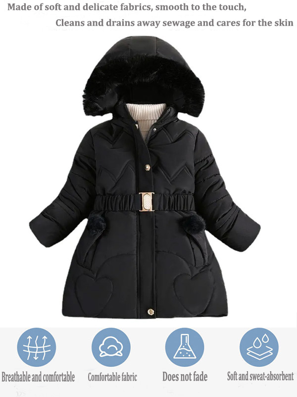 • Product Name: Winter New Girls' Black Cotton Coat #N002